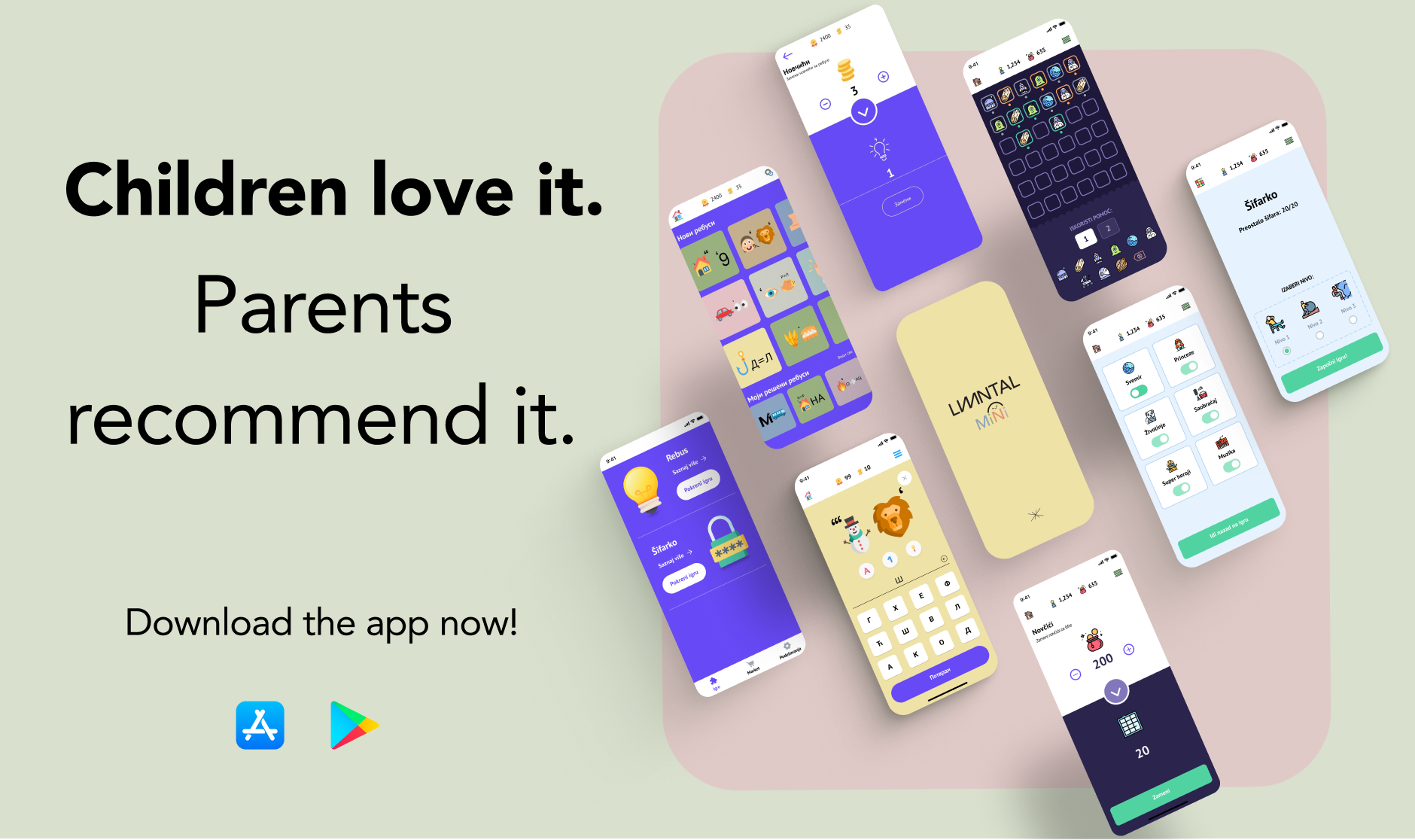 All children sooner or later get in touch with technology, phones, tablets, applications. Consuming all different kinds of content online is just a click away from them.We as parents need to educate them about the best ways to consume that content, so it's both fun and educational at the same time.That is why we have developed Elemental Mini, application that will, by using educational games, encourage children to think, spark their imagination, share new knowledge with them, and all that while having fun.And for older ones, we believe that each of the games can become part of their daily routine, place where they can relax and enjoy.First game that is part of Elemental Mini is REBUS! Using the rules for resolving the challenge find out what is the hidden object. User has 3 helps in front of them to be used when stuck with solving rebuses. With each solved rebus, you collect points and coins that can be replaced later for new rebuses. After successfully resolving each rebus, users are presented with fun fact that relates to the solution of the rebus. Have fun and learn at the same time.Second game that has enriched Elemental Mini is ŠIFARKO! Using logic, combinatorics, and a bit of luck try to guess the right combination of symbols in 6 attempts. Use one of the two hints: 1 or 2 symbols on the right place! Track your score on the leaderboard and compete with other players. Choose one of the symbol themes that suits you the most and enjoy while cracking the code!